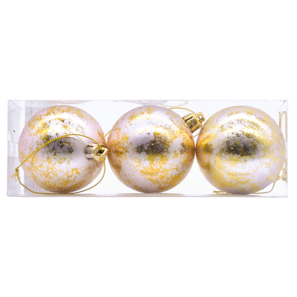 Rosa Julgranskulor med Guldfolie omfattar tre stycken rosa julkulor med glänsande guldfolie. Kulorna är tillverkade i plast och har en diameter på ungefär 5,5 centimeter. Säljs i 3-pack.