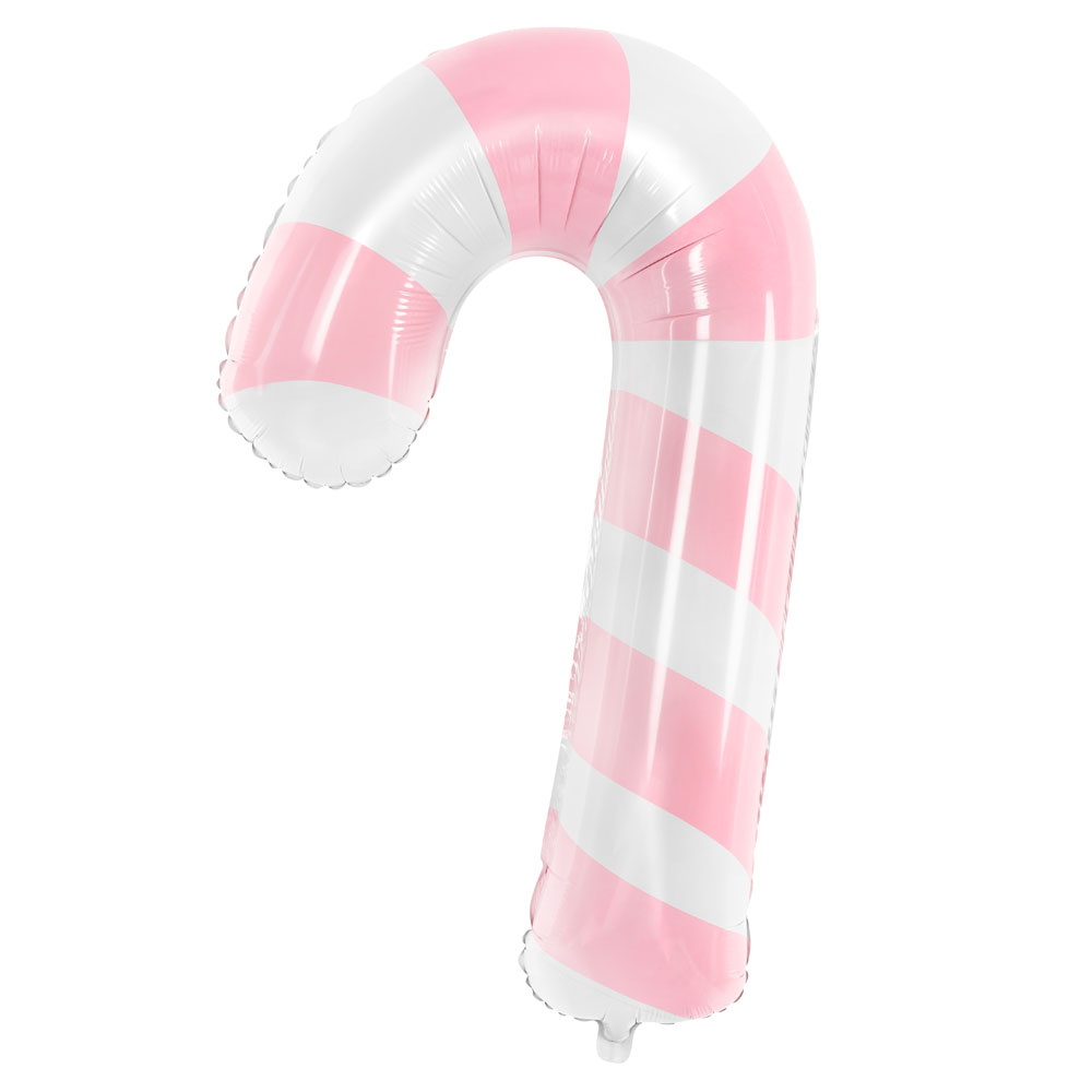 Rosa Polkagris Folieballong innehåller en folieballong i form av en polkagris i vitt och rosa.