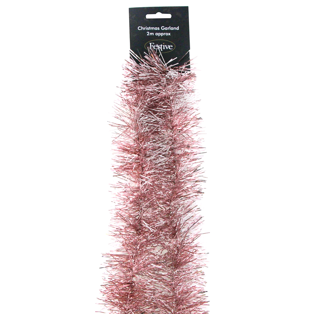 Roséguld Glittergirlang består av en blank roséguld girlang för dekoration. Girlangen är tillverkad i plast och mäter 2 meter lång.