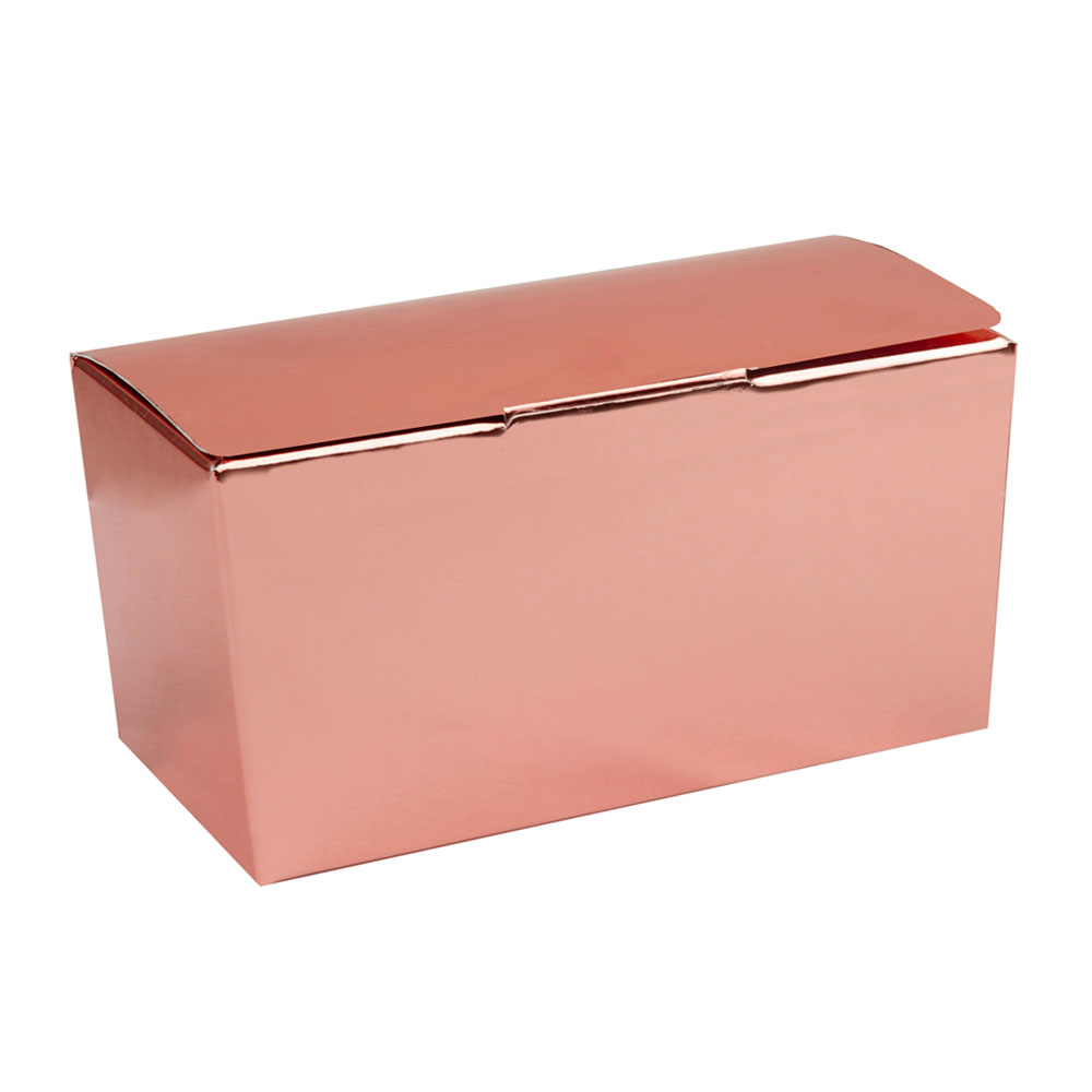 Roseguldiga Ballotin Askar omfattar ett 25-pack roseguldiga askar av papp. Askarna är ca 6 cm höga, 12 cm breda och 6 cm djupa. Vita små etikettlappar medföljer.