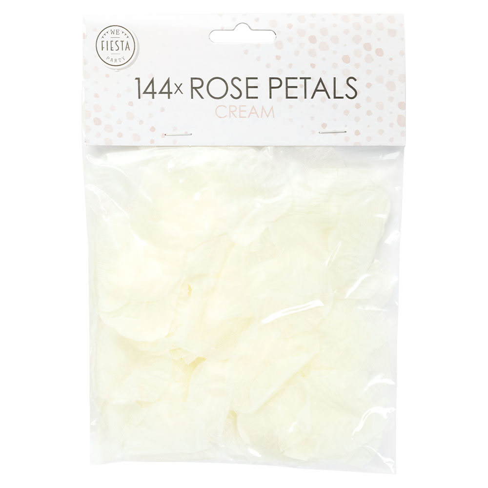 Rosenblad Konfetti Krämvit omfattar konfetti i krämvit färg i form av rosenblad i syntetmaterial. Varje förpackning innehåller 144 stycken rosenblad.