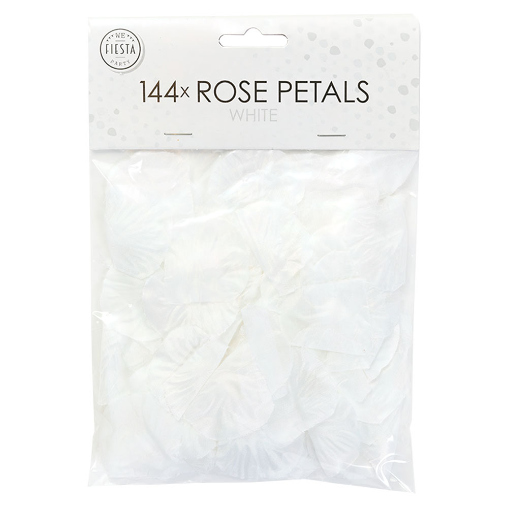Rosenblad Konfetti Vit omfattar en konfetti med vita rosenblad i syntetmaterial. Varje förpackning innehåller 144 stycken rosenblad.
