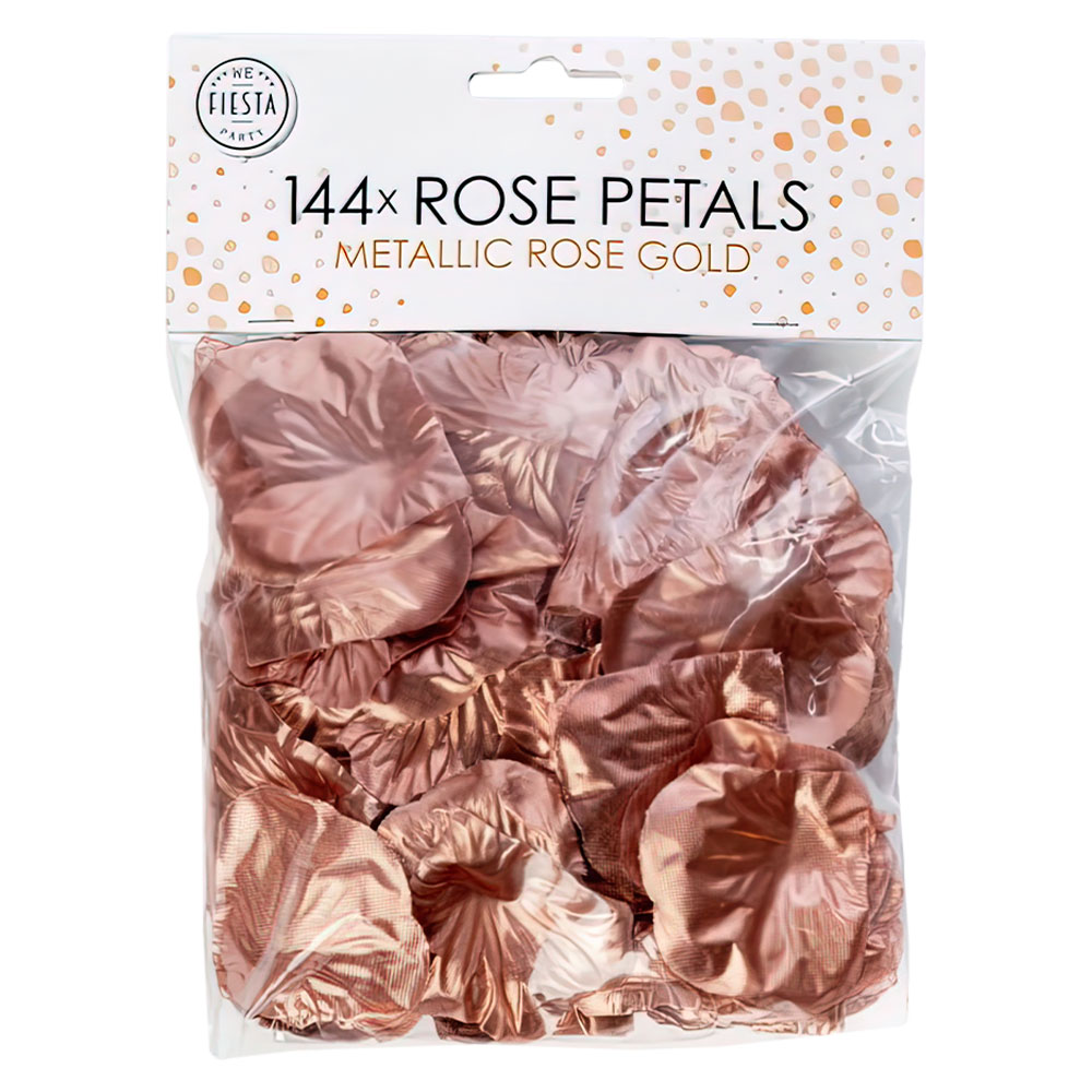 Rosenblad Metallic Roséguld omfattar 144 stycken rosenblad i metallic roséguldig färg. Rosenbladen är ca 5 x 5 cm och är i syntetmaterial.