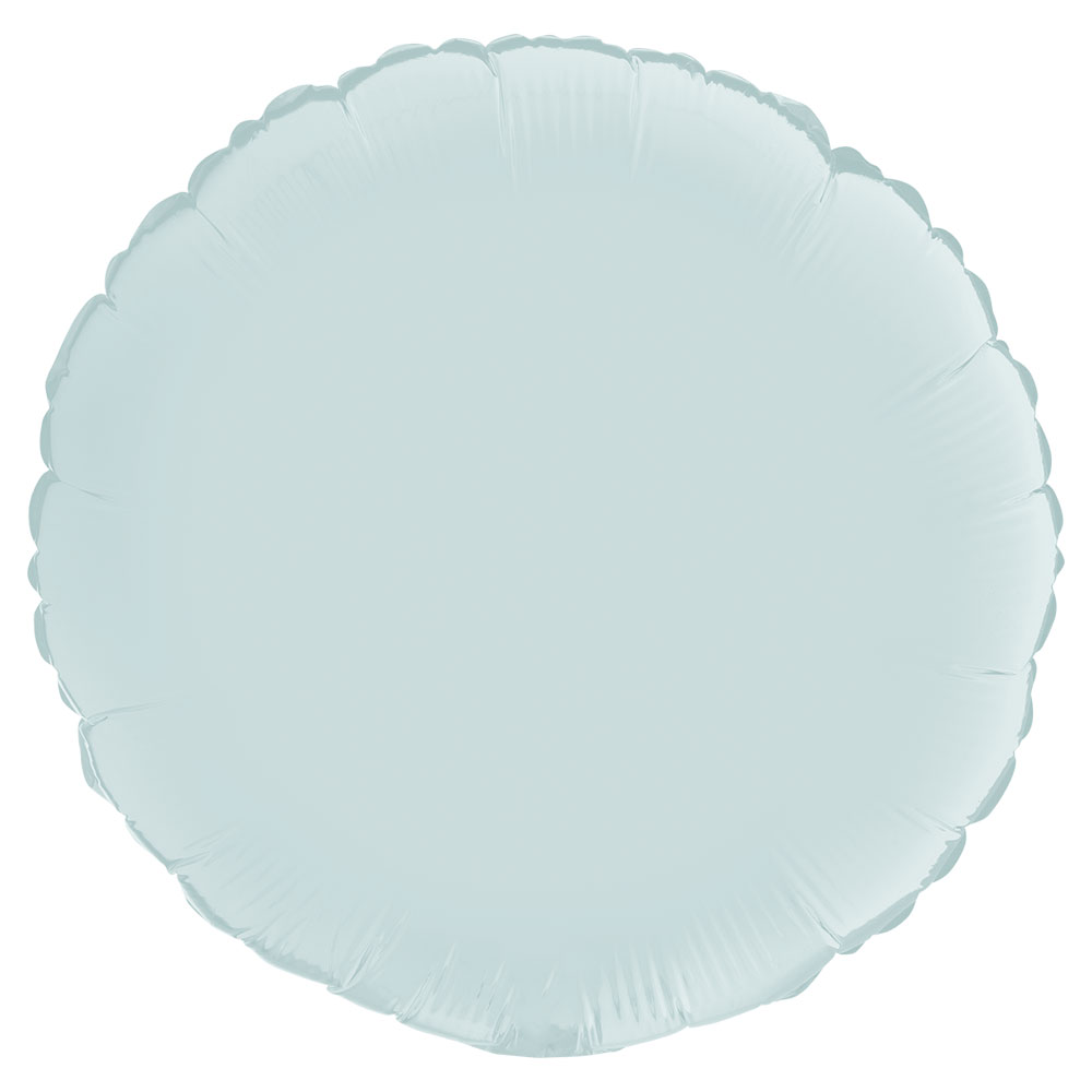 Rund Folieballong Satin Pastellblå omfattar en 46 cm stor, rund folieballong i pastellblått. Ballongen har självförslutande ventil och fylls med luft eller helium.