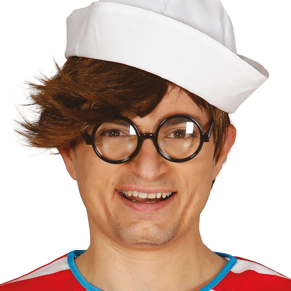 Runda Plastglasögon omfattar ett par runda, svarta plastglasögon med genomskinliga linser.