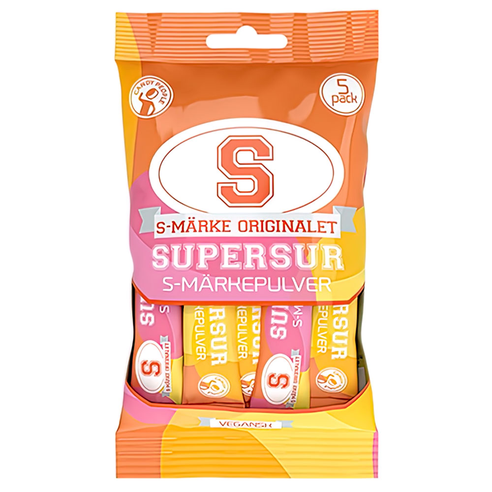 S Märke super-surt pulver är ett gelatinfritt och veganskt godis pulver passande för den som aldrig riktigt tycker sig få tillräckligt av pulvret på godiset. Detta S-Märkepulver godis i påse ger dig flera portioner super-sur pulver som håller dina smaklökar sura extra länge.