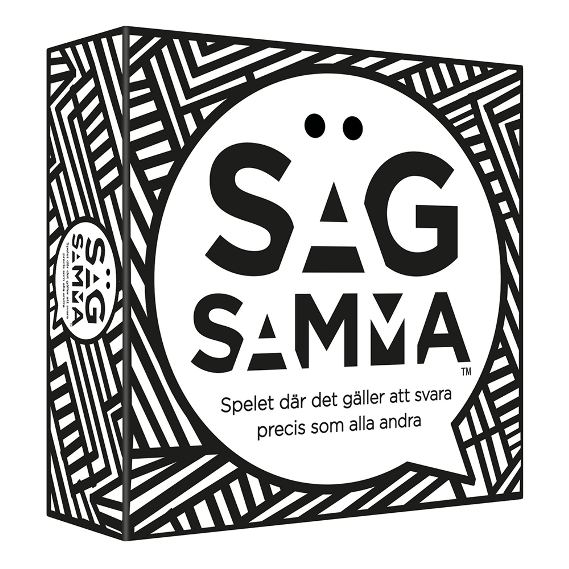 Säg Samma Frågespel är ett underhållande och riktigt roligt sällskapsspel med fart där det gäller att svara det du tror att de flesta andra spelarna också kommer att svara. Ingen behöver vänta på sin tur, utan här svarar alla samtidigt och alla kan få poäng när som helst. Ju fler som svarar samma som du, desto fler poäng blir det.