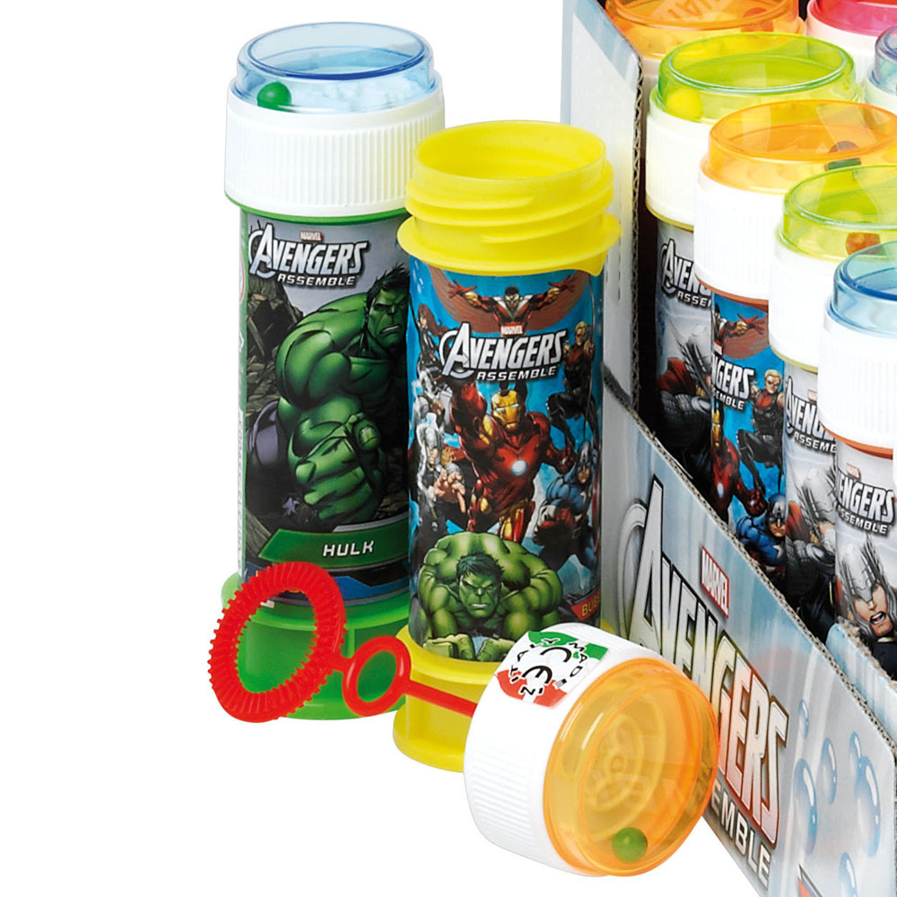 Såpbubblor Avengers omfattar en såpbubbelflaska med motiv av olika Avengers-karaktärer. Flaskan kommer med en tillhörande pinne för att blåsa upp bubblorna och har även ett roligt minispel på locket som blir ett roligt tidsfördriv för barnen.