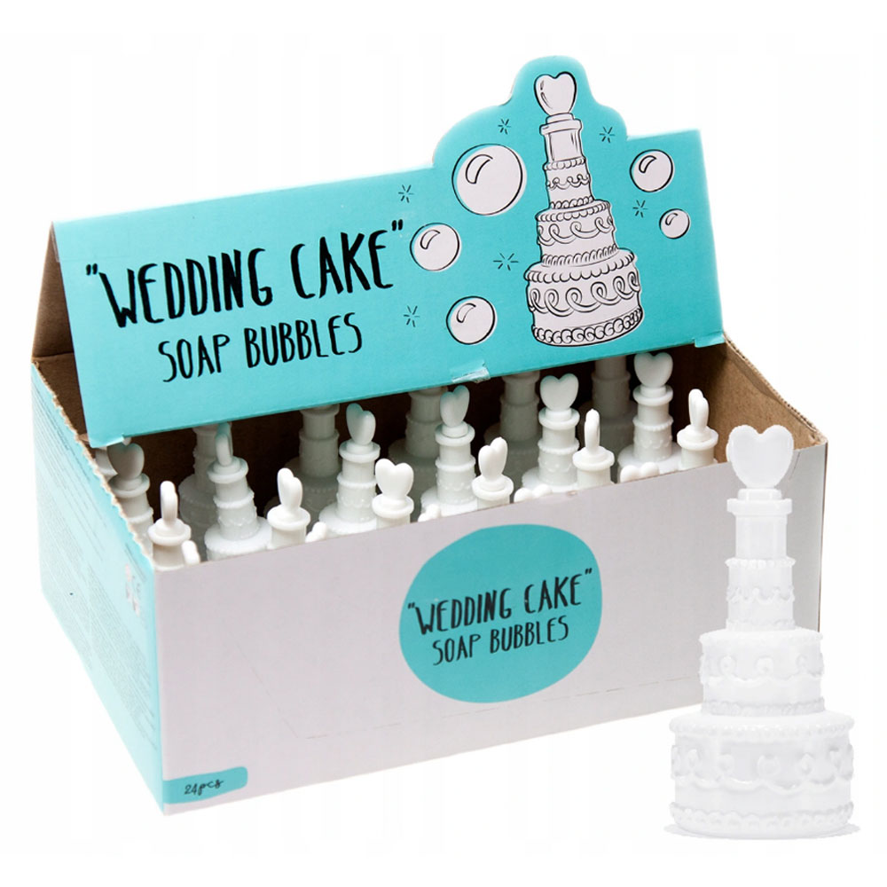 – 24 st såpbubblor i form av bröllopstårtor.