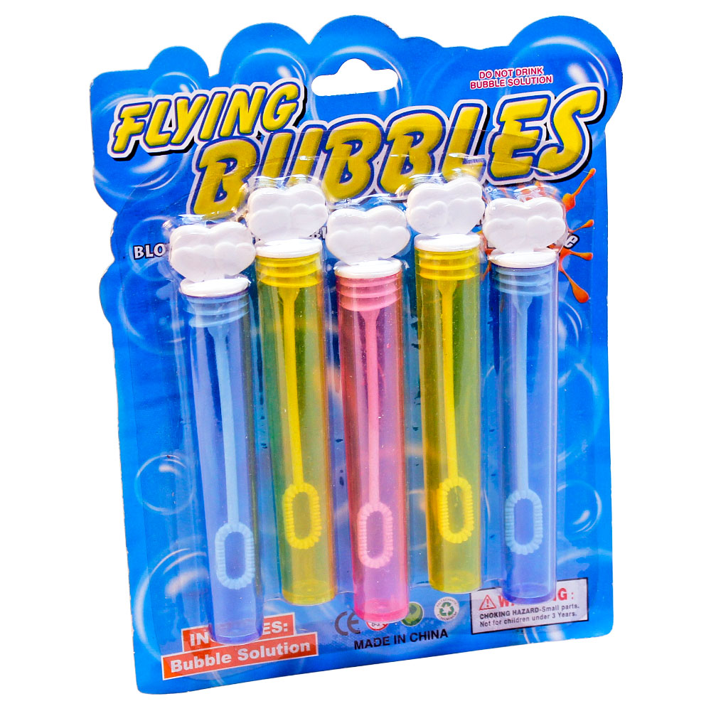 Såpbubblor Flerpack består av en förpackning med såpbubblor. Förpackningen innehåller 5 stycken små flaskor med 10 milliliter såpbubbelvätska i vardera flaska.