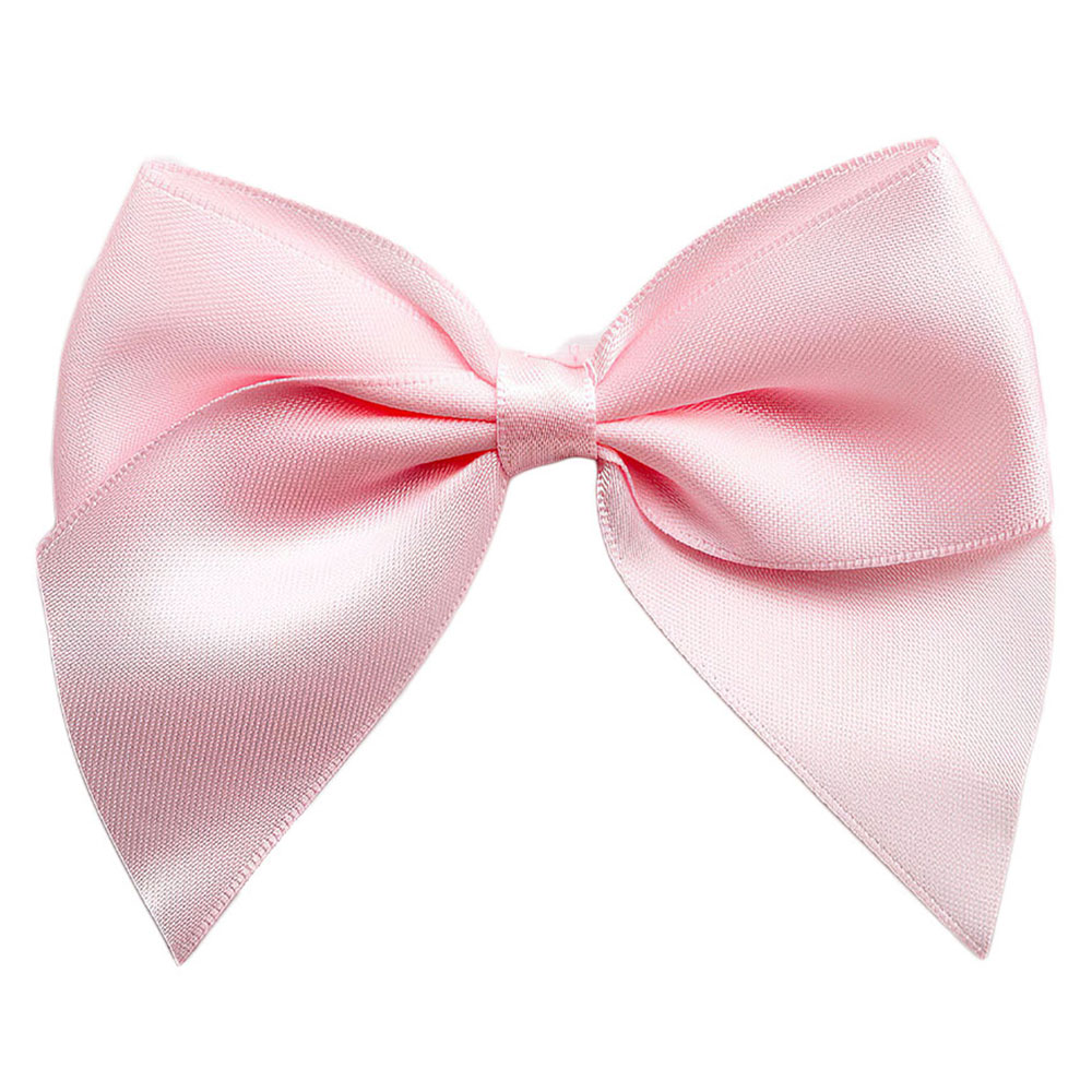 Satinrosetter Ljusrosa omfattar ett 6-pack ljusrosa satinrosetter av polyester. Rosetterna har självhäftande baksida och är ca 10 cm breda och 8,5 cm långa.
