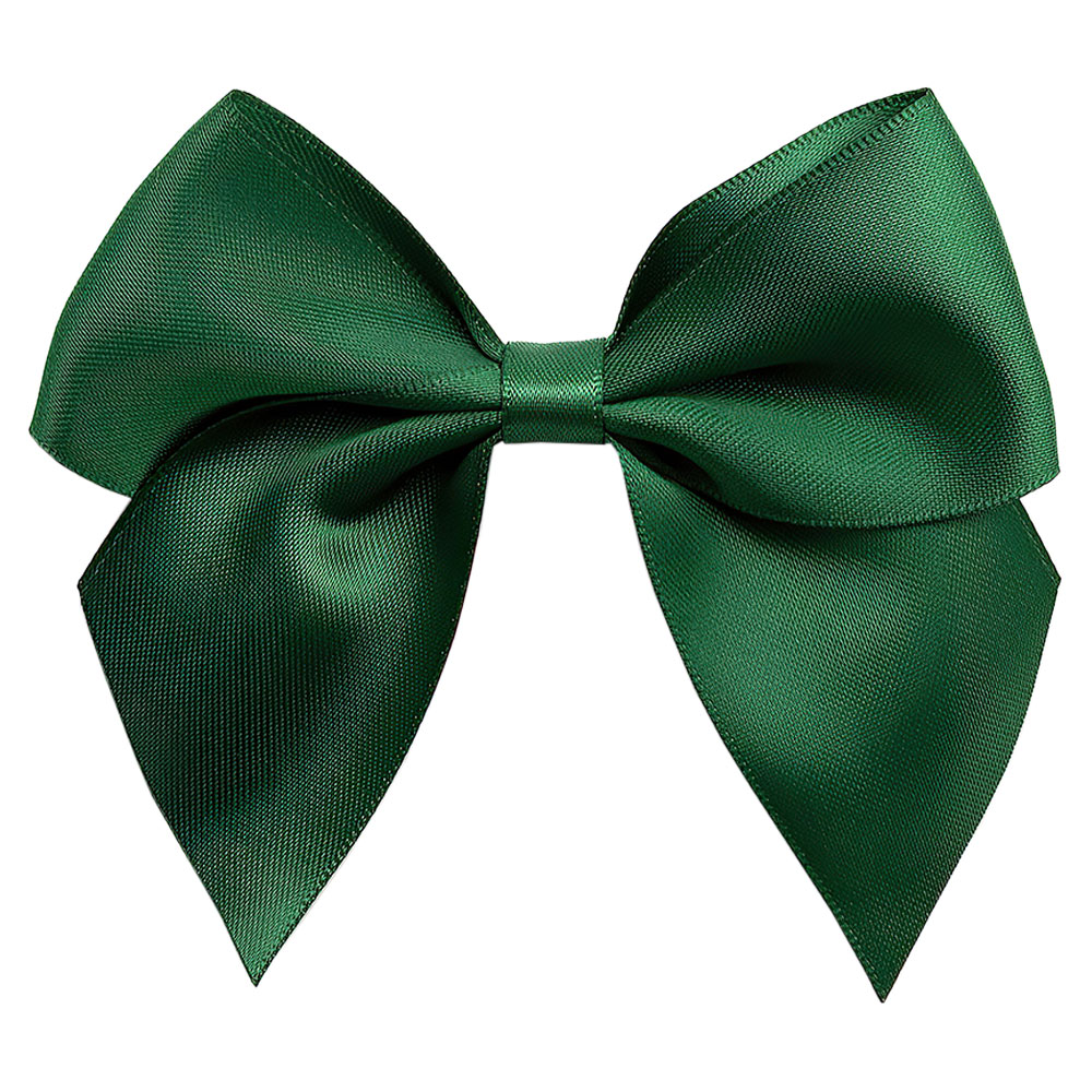 Satinrosetter Mörkgrön omfattar ett 6-pack mörkgröna satinrosetter av polyester. Rosetterna har självhäftande baksida och är ca 10 cm breda och 8,5 cm långa.