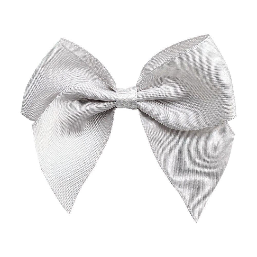 Satinrosetter Silver omfattar ett 6-pack satinrosetter av polyester i silver. Rosetterna har självhäftande baksida och är ca 10 cm breda och 8,5 cm långa.