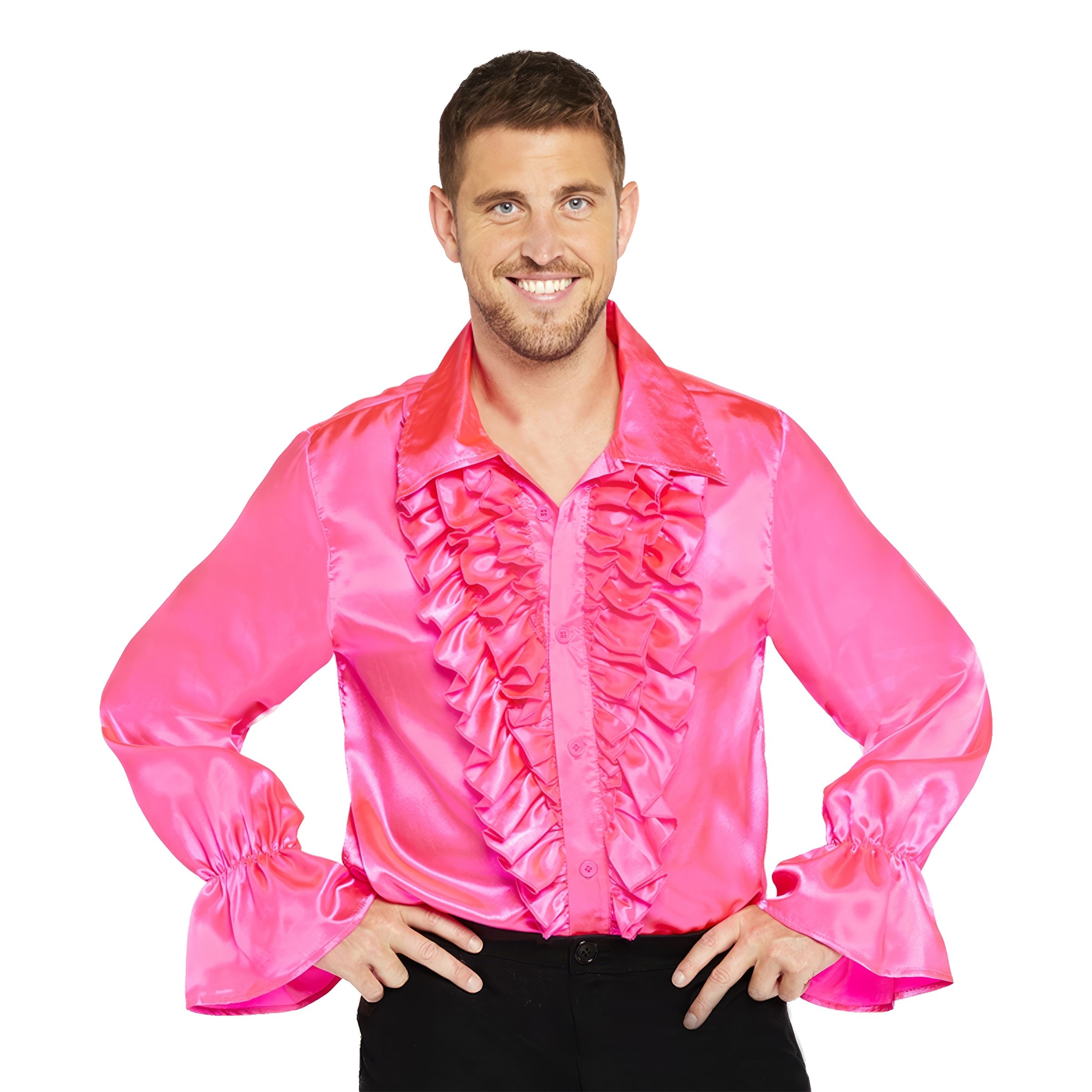 Satinskjorta Rosa är en rosa kråsskjorta med utsvängda ärmar och kommer i storlekar som passar vuxna (herrmodell). Passar lika bra till 70-talsfesten som när du vill spice:a till dansgolvet med en passionerad flamenco-dans.