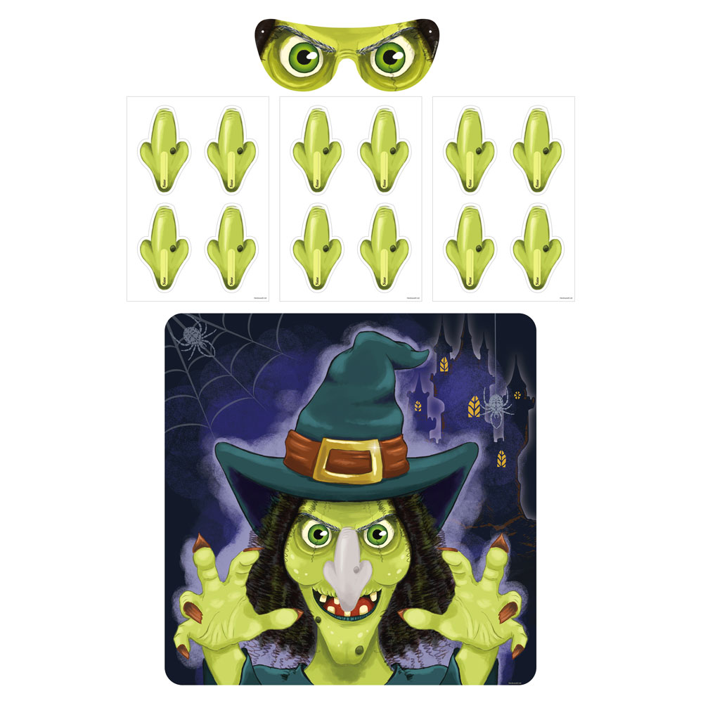Sätt Näsan På Häxan Halloween Spel omfattar ett spel till halloween som går ut på att med förbundna ögon försöka sätta häxans näsa på rätt plats på bilden. Spelet kommer med en stor bild med häxmotiv, en ögonbindel och 12 st näsor att spela med. Passande spel för både barn och vuxna.