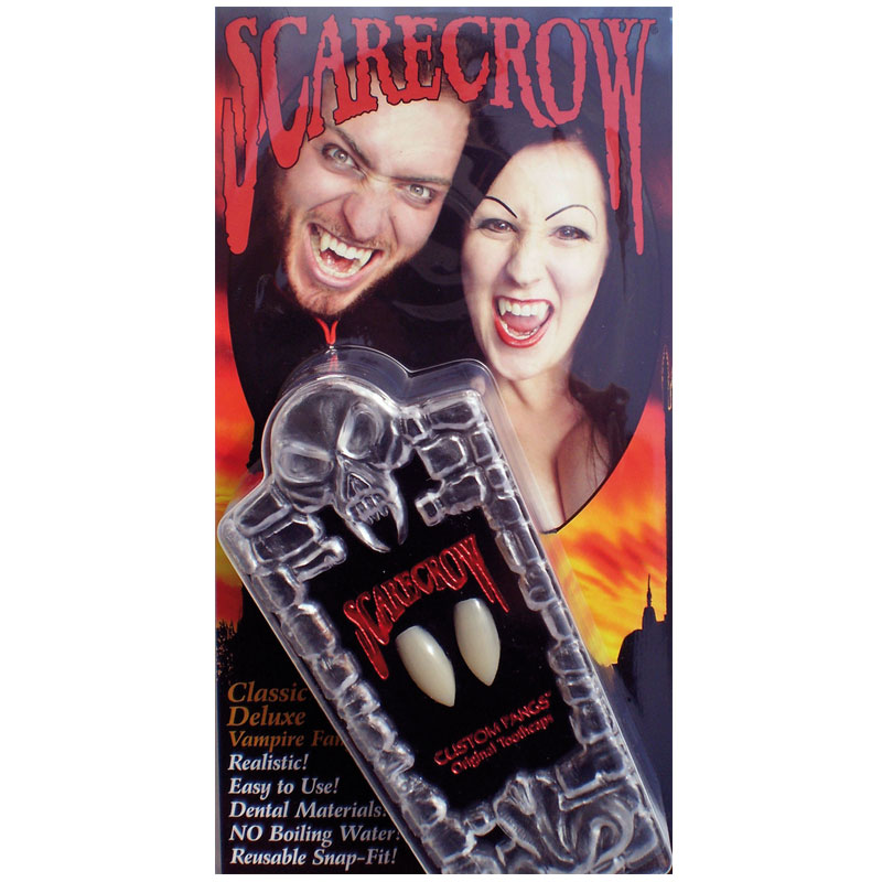 Scarecrow Vampyr Stifttänder Deluxe är tillverkade av hög kvalitet och fästs enkelt ovanpå dina tänder med hjälp av dess speciella formula för en perfekt passform. Stifttänderna ger ifrån sig en realistisk vampyrlook och blir ännu bättre i kombination med en vampyr-outfit.