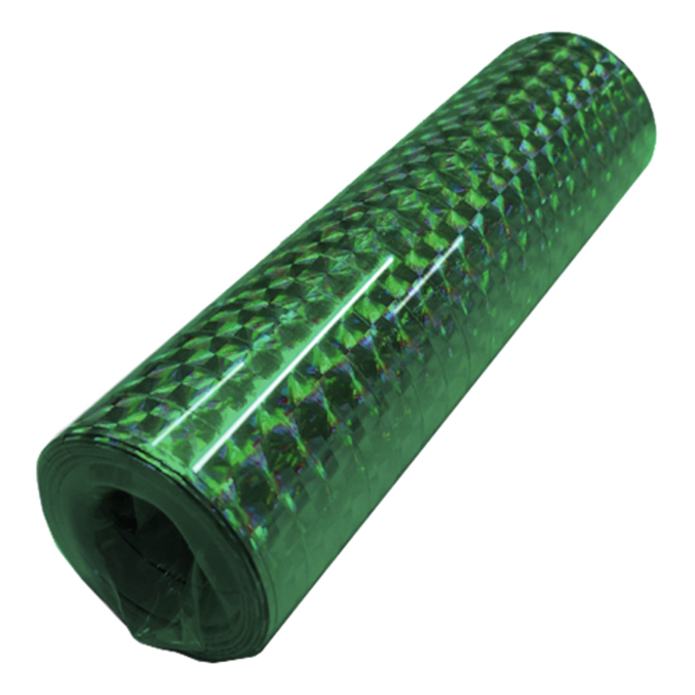 Serpentin Holografisk Grön är tillverkad av papper och är 18 cm x 4 m. Serpentinen är grön med en holografisk effekt som blänker och glittrar.