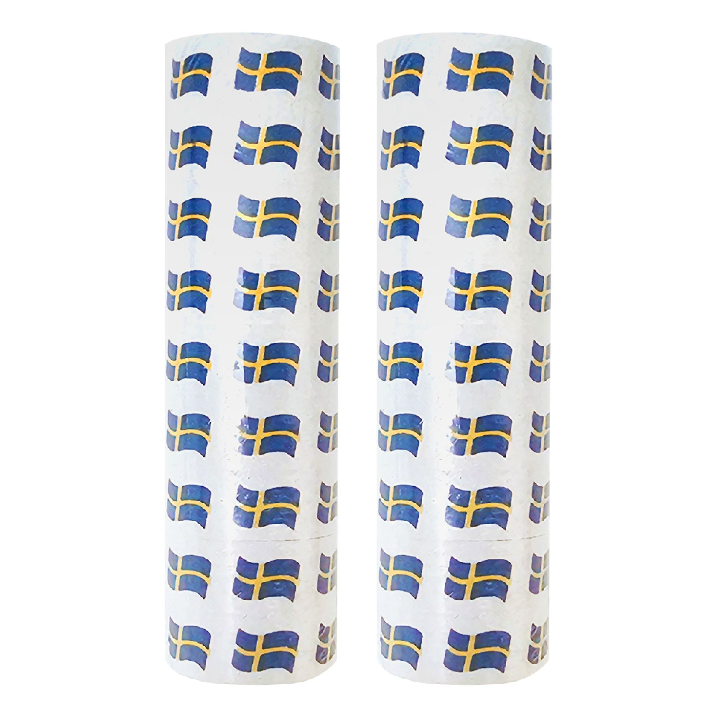 Serpentiner Svenska Flaggan innehåller två rullar klassiska serpentiner med vit bakgrund och små svenska flaggor i förgrunden. Ett måste på födelsedagskalas, midsommar och nationaldagen!