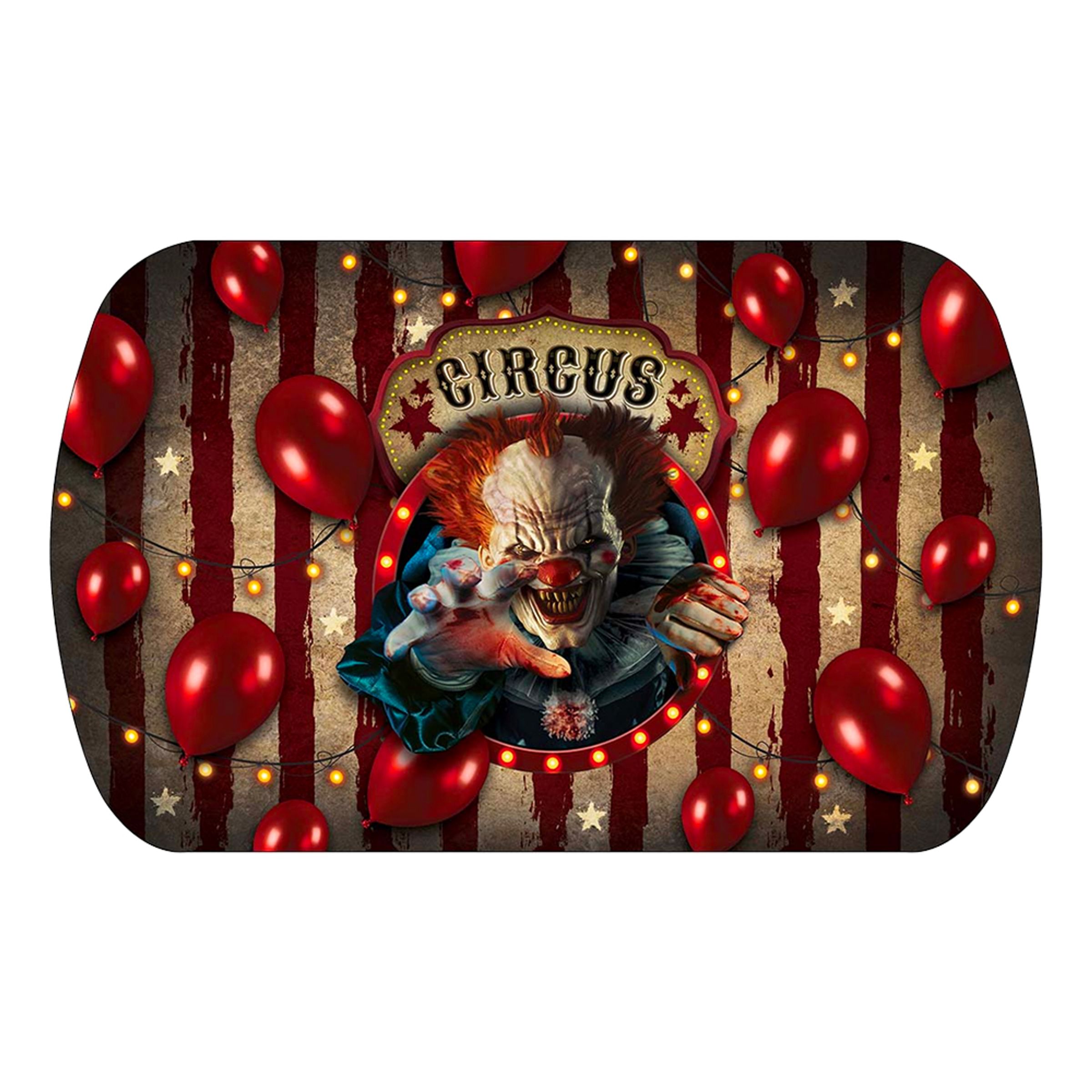 Serveringsbricka Creepy Clown inkluderar bricka i papp som kommer med motiv föreställande en skräckinjagande clown med texten "Circus".