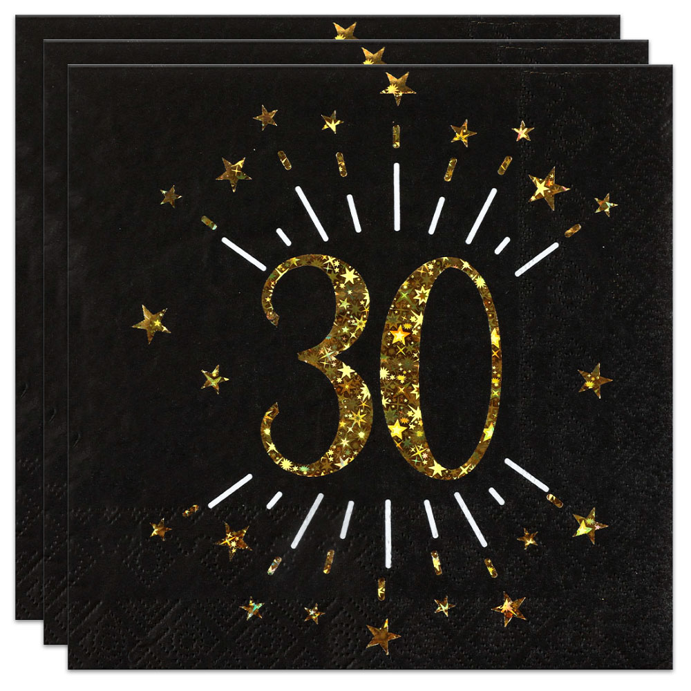 Stämningshöjande 30-års servetter för dig som önskar en riktigt snygg dukning när du fyller 30 år! Med dessa 30-års fest servetter kan du snabbt och enkelt komplettera din dukning på ett riktigt fint sätt. Ett utmärkt val för alla 30-åringar som önskar en festlig dukning i svart och guld till kommande 30-års kalas eller fest.