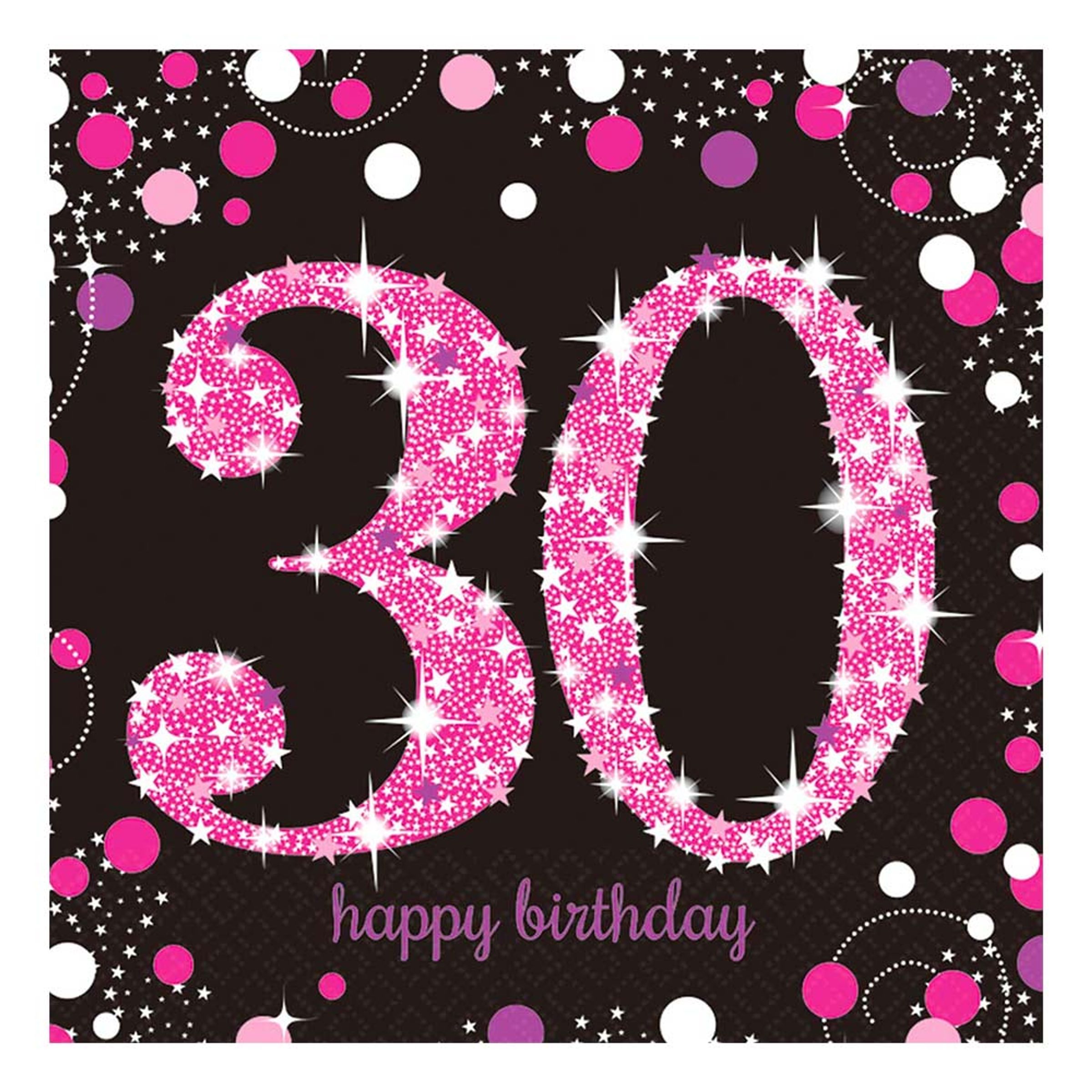 Servetter 30 Svart/Rosa Glitter inkluderar 16 stycken svarta servetter med rosa detaljer. I mitten av servetten står det "30 Happy Birtday". Perfekt till födelsedagsfesten!