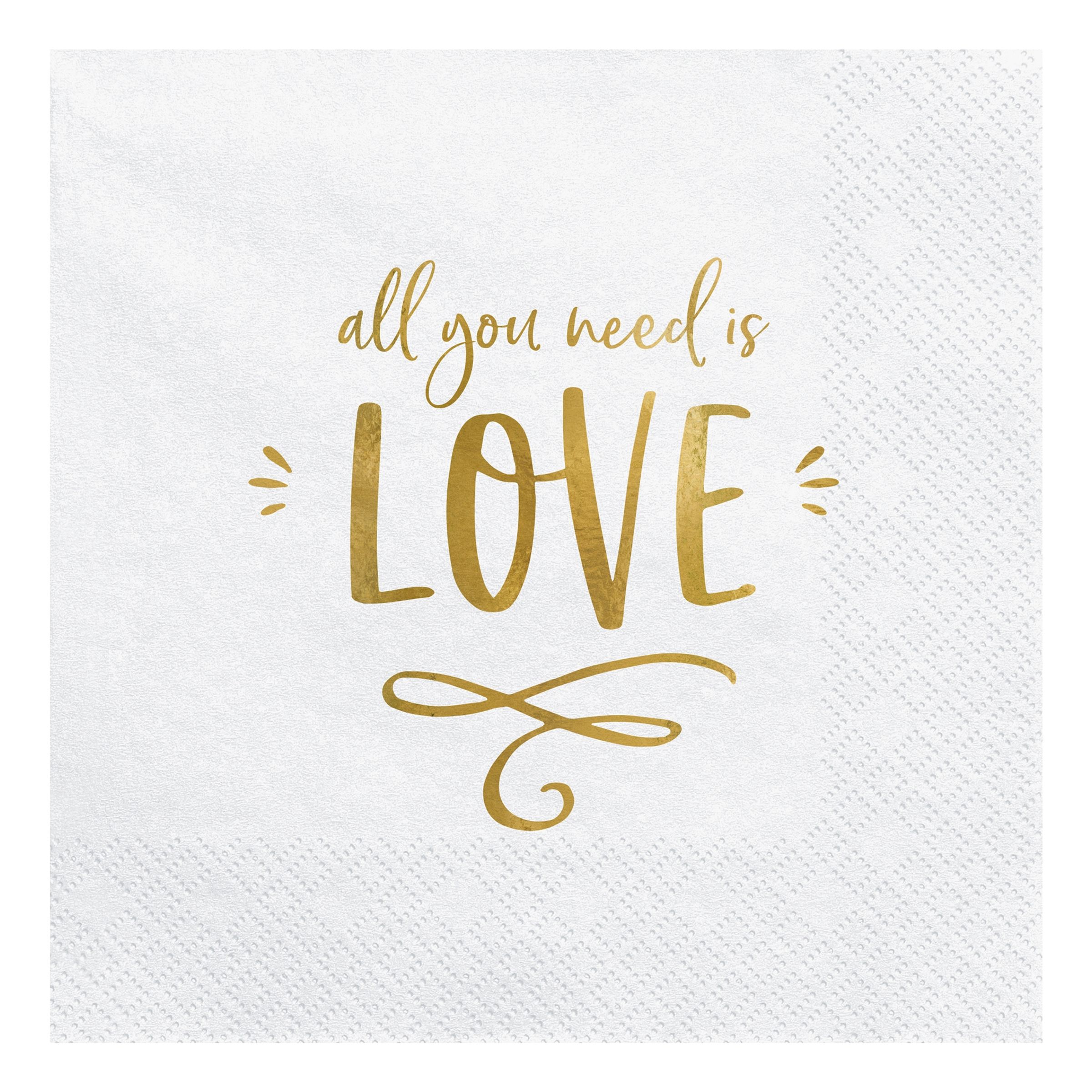 The Beatles bevingade ord har ekat genom årtionden och känns lika sanna än idag. Så varför inte duka upp för en kärleksfull middag med de här eleganta servetterna? Perfekt för alla romantiska tillställningar med guldtema!