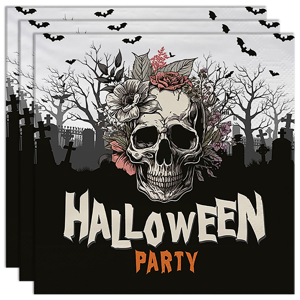 Förbered din dukning till halloween med dessa snygga pappersservetter. Våra engångsservetter ger festen en kuslig känsla med sitt blommiga dödskallemotiv. Perfekta servetter för halloween, skapar en atmosfär som sätter stämningen på din sammankomst.