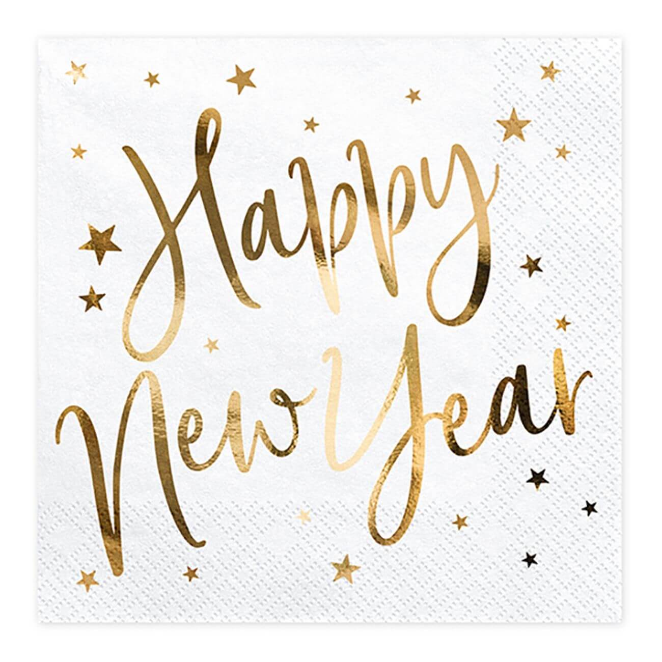 Servetter Happy New Year Guld Metallic/Vit 20-pack