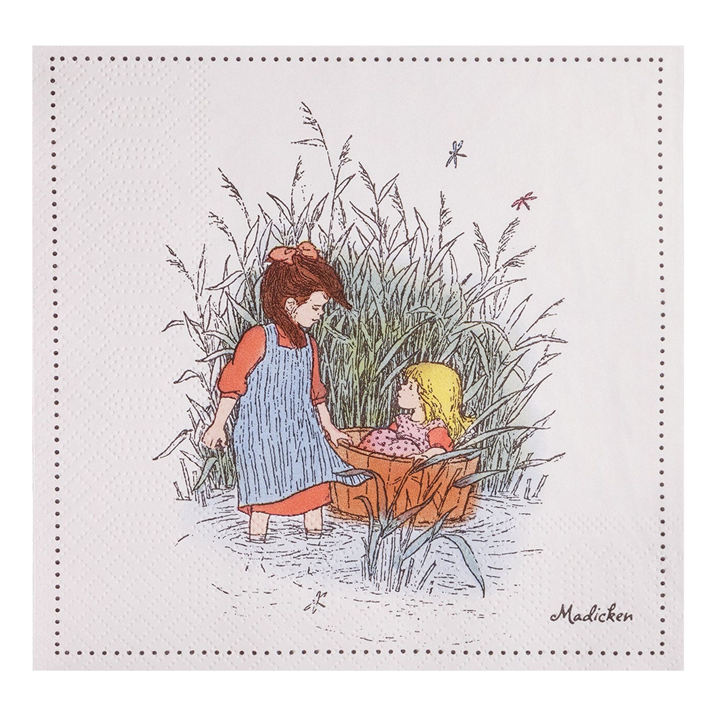 Om barnen har lika kul på kalaset som Madicken och Lisbet brukar ha så vågar vi gissa att det kommer att behövas ett gäng servetter. Duka upp med dessa för en lekfullt Madicken-tema till födelsedagskalaset för barnet!
