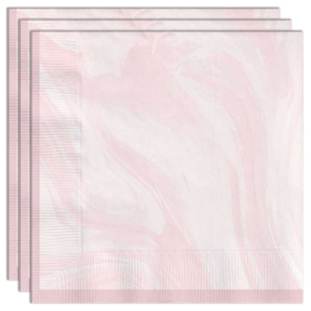 Servetter Marble Pink omfattar ett 20-pack ljusrosa servetter med marmormönster. Servetterna har tre lager och mäter ca 33 x 33 cm utvikta.