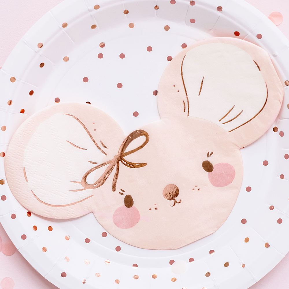 Servetter Mus omfattar ett 20-pack servetter i form av en rosa mus med roséguld detaljer.