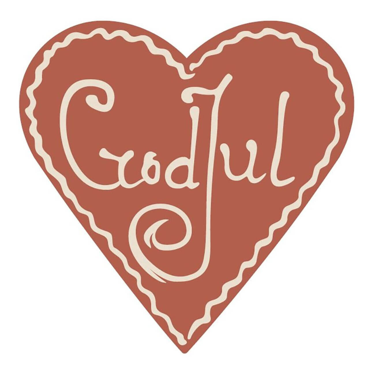 Perfekta för juldukningen blir dessa pappersservetter som ser ut som bruna pepparkakshjärtan med glasyr och texten God Jul.