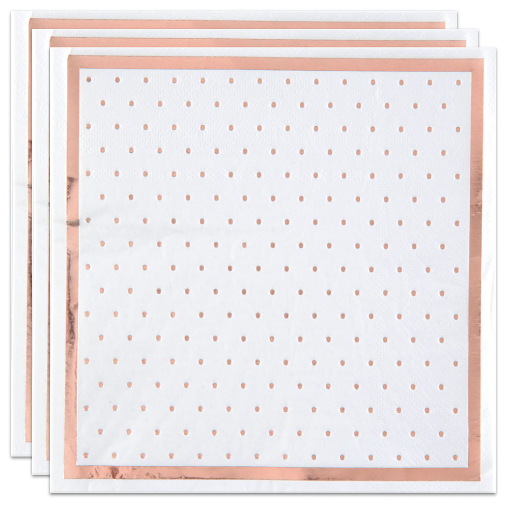 Perfekta servetter till varje dukning i vitt och roseguld! Med dessa fint prickiga servetter kan du snabbt och enkelt komplettera din fest eller kalas dukning på ett riktigt snyggt sätt. Passande servetter till många olika firanden så som födelsedagar, barnkalas, bröllop, dop och mycket mer.