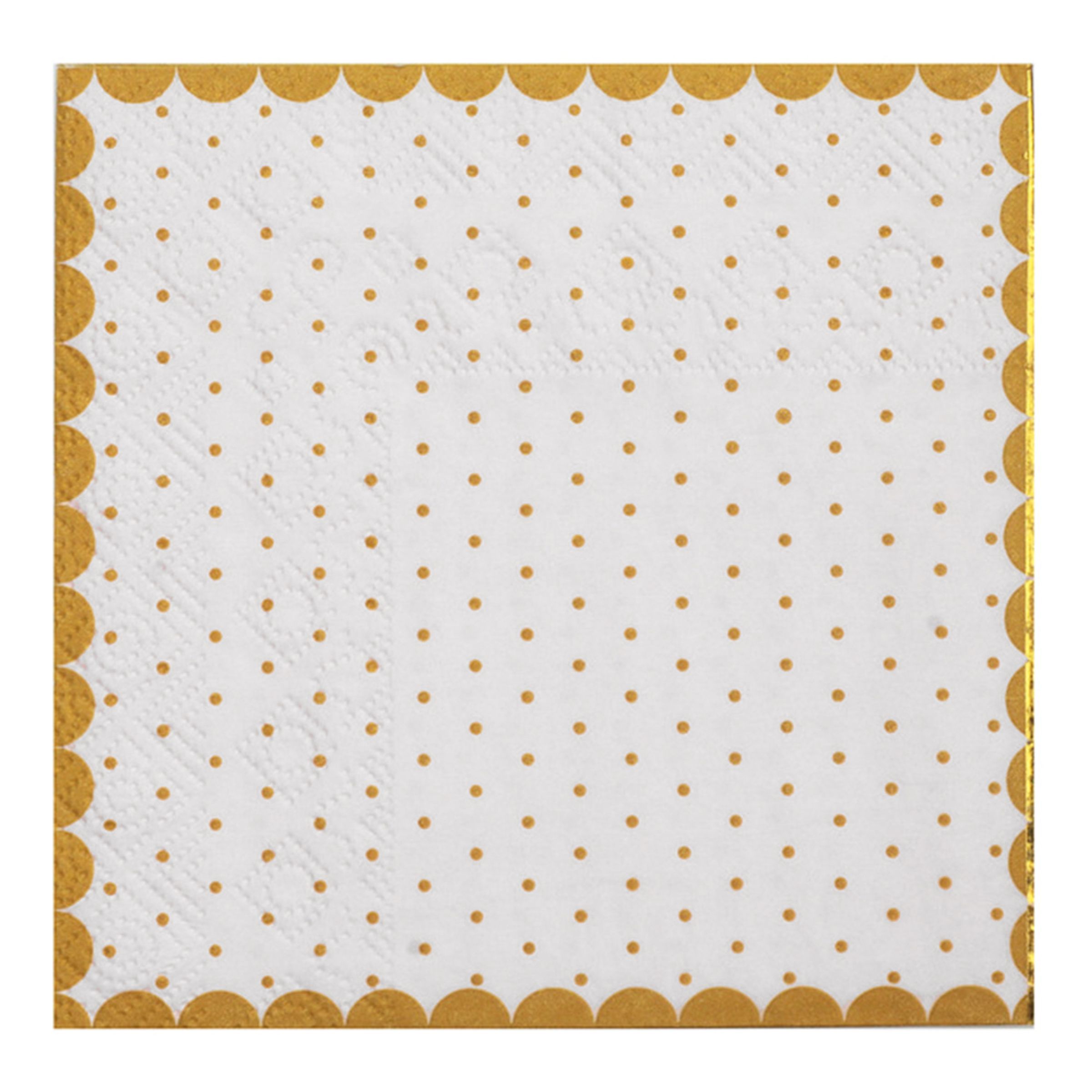 Fina servetter för fina tillfällen. Med sin guldiga kant och lika guldiga prickar är dessa servetter perfekta att duka och dekorera med på bröllop!