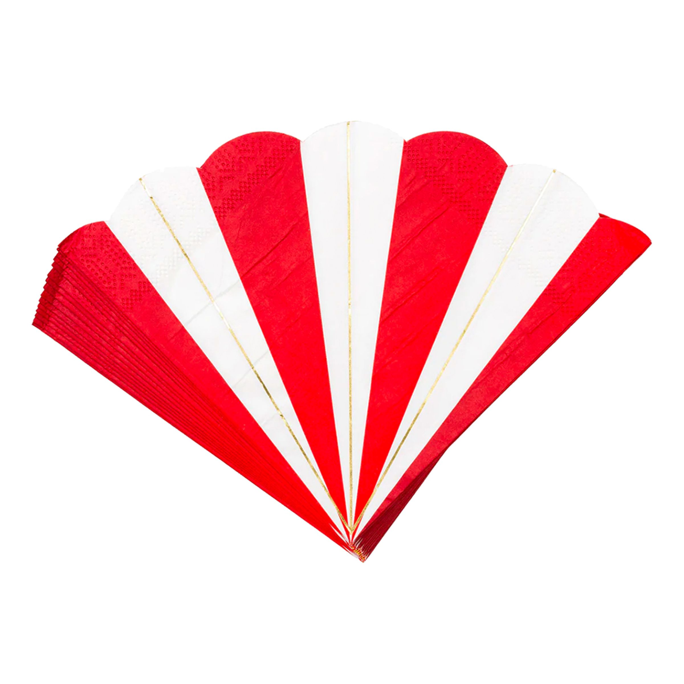 Servetter Röd/Vit Randiga Stansade är vit- och rödrandiga med guldfärgade linjer i snyggt stansat utförande. Klockrena servetter att duka upp med på julbordet eller till cirkuskalaset! Köp gärna till resterande artiklar i samma kollektion för matchande dukning.