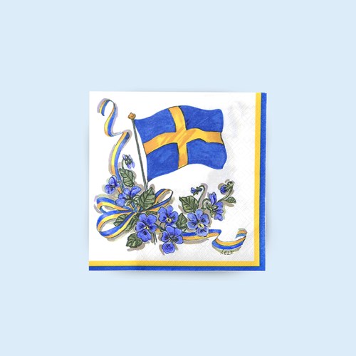 Somriga servetter med blomsterkrans och svenska flaggan!