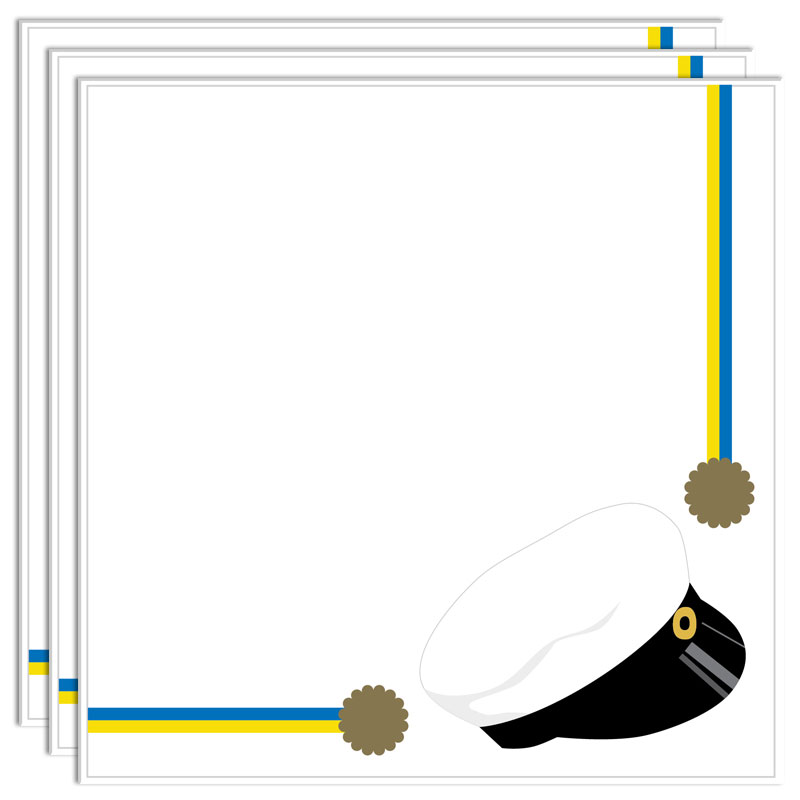 Servetter Studentmössa innehåller vita servetter med blå-gula ränder längst kanterna samt ett motiv av en studentmössa.