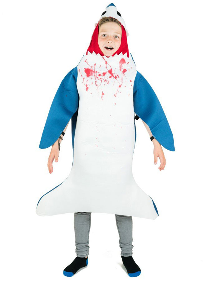 Se till att verkligen skrämma vettet ur dina vänner på sommarfesten eller maskeraden med denna läskiga hajdräkt! En riktigt otäck haj maskeraddräkt för barn som helt klart får till den rätta, läskiga looken inför Halloween eller maskeraden.
