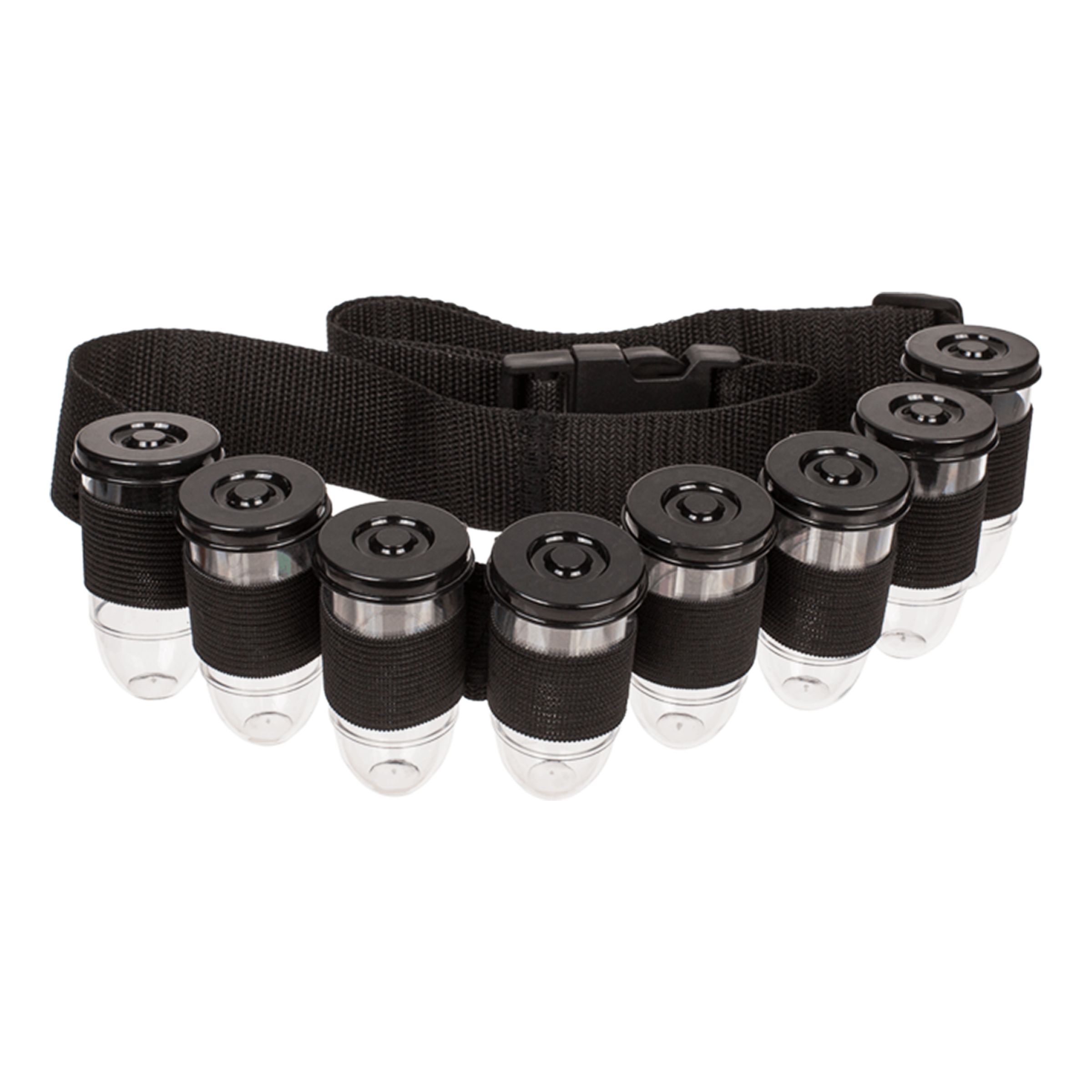 Shotbältet är ett slags hölster som låter dig utrustas med de tolv medföljande shotglasen genom att bära bältet runt midjan eller över axeln. Bältet är justerbart till omkretsen och passar alltså de flesta. Shotglasen kommer med skruvlock och rymmer cirka 30 ml.