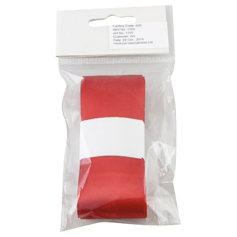 Sidenband Röd 38 mm består av breda röda siden liknande dekorationsband med en bredd på 38 millimeter och en längd på 3 meter.