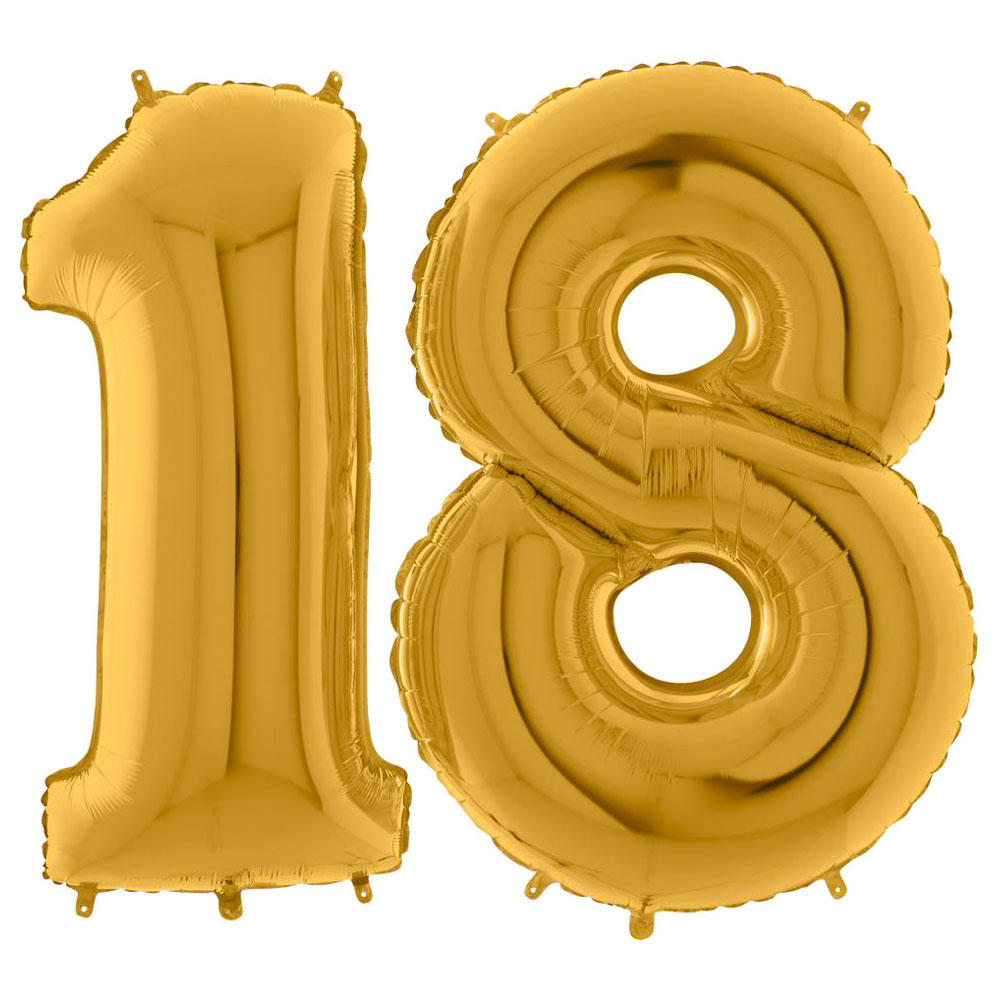 Sätt guldkant på ditt 18 års-kalas med denna folieballong siffra i snyggt guld! En härlig sifferballong som fylls med luft eller helium och är självförslutande. Förhöj stämningen med denna ballong siffra på din 18 års fest!