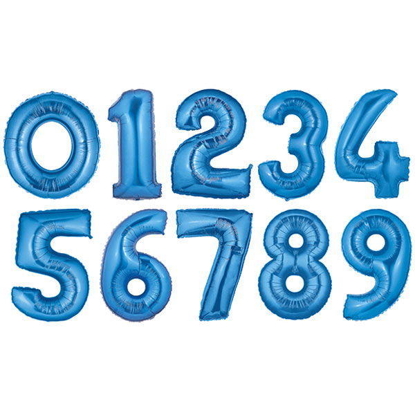 Sifferballong Blå omfattar blå folieballonger i siffrorna 0 till 9. Ballongerna är ca 102 cm höga och fylls med helium eller luft och har självförslutande ventil. Fyller du ballongerna med luft använd ballongpump eller sugrör.