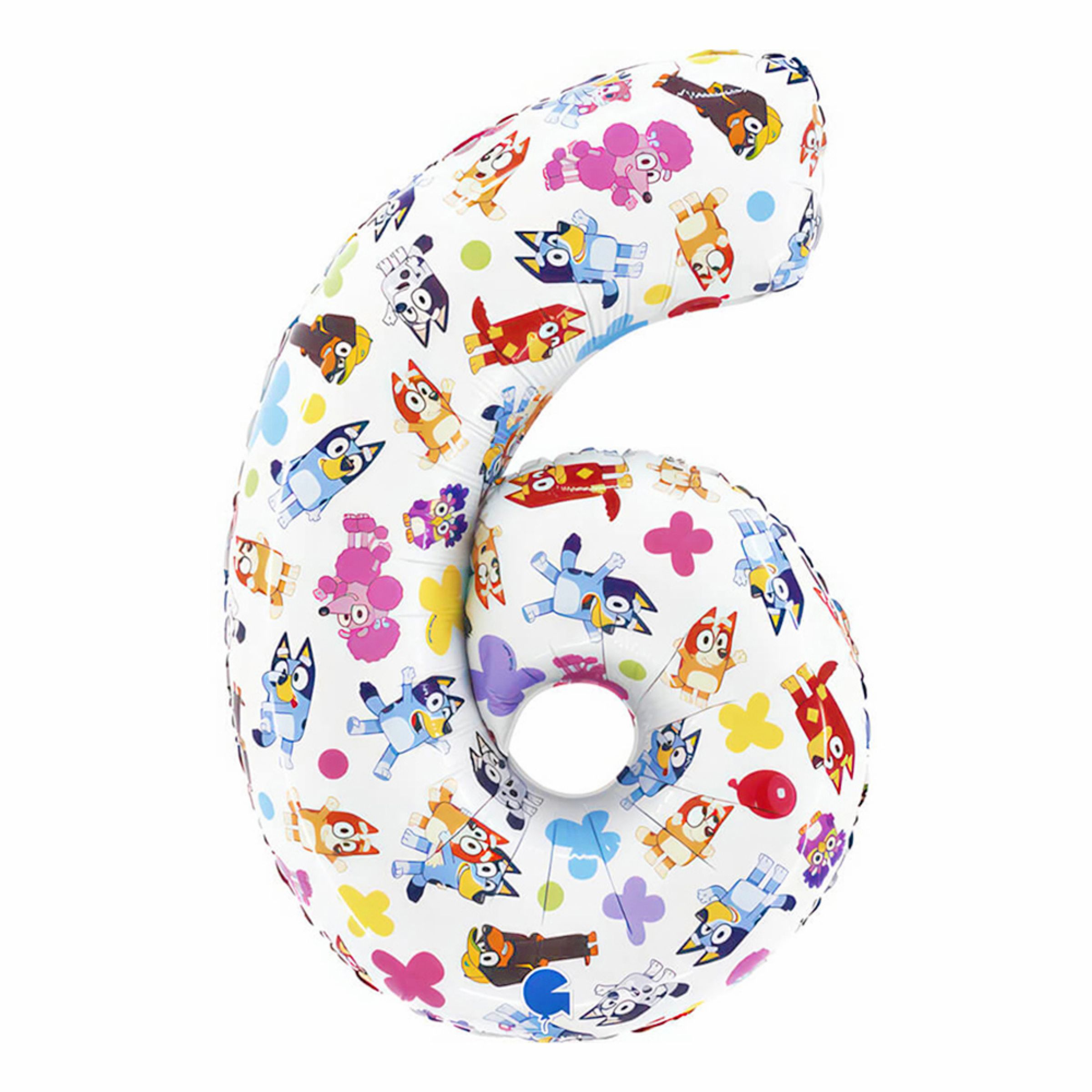 Känner du en liten Bluey-fantast där hemma som fyller år? Välj en passande siffra och blås upp med helium för att bjuda in såväl Bluey som Bingo och resten av gänget till kalaset med Bluey-tema!