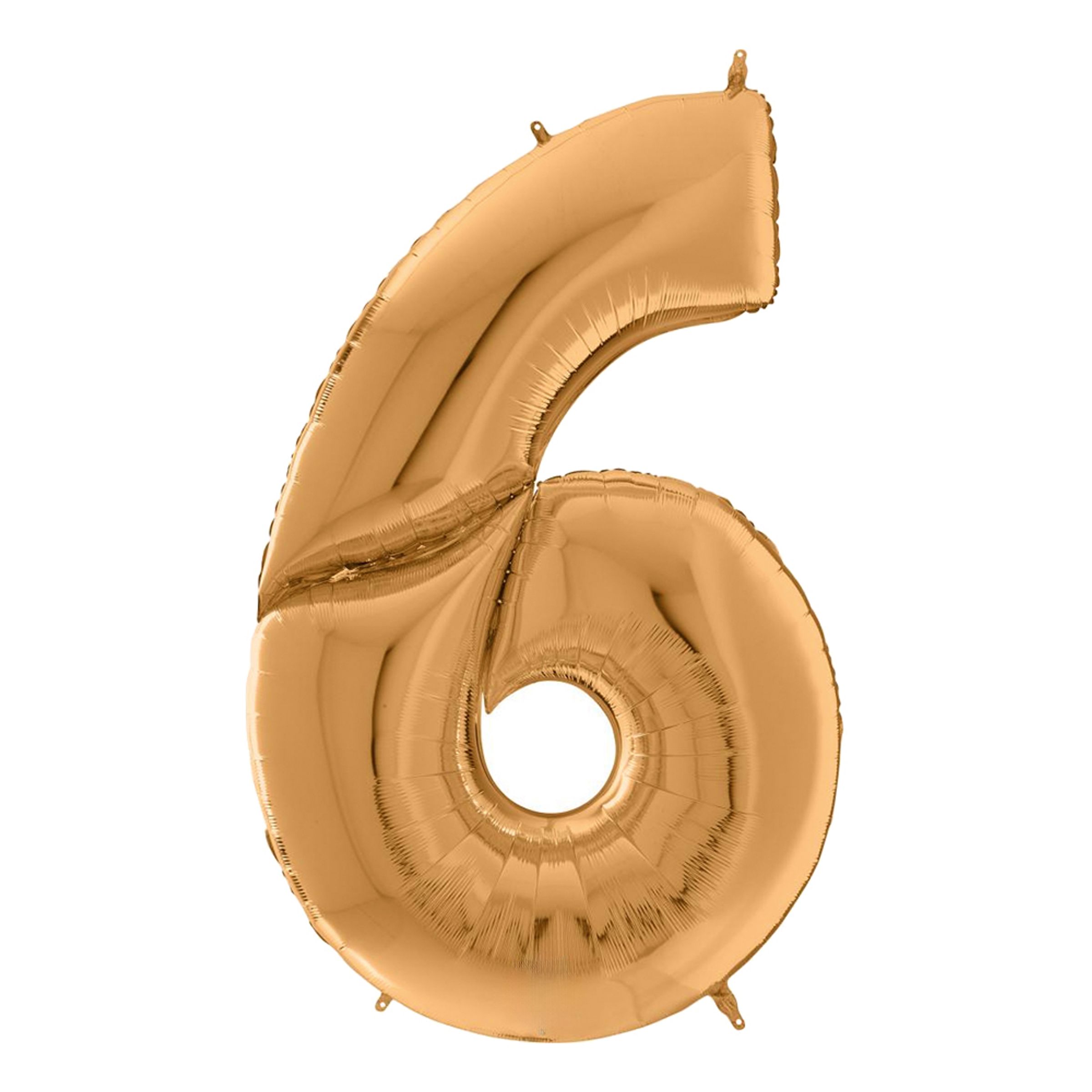 Sifferballong Guld Gigantisk levereras styckvis och finns att välja bland siffrorna 0-9. Varje ballong mäter hela 164 cm stor och är tillverkad i ett foliematerial. Ballongen ger en väldigt lyxig känsla på festen tack vare sin härliga metallicyta. Oavsett vilken eller vilka siffror du väljer så finns det cirka fyra stycken flärpar så att du enkelt skall kunna hänga upp dem på väggen eller exempelvis dra ett snöre genom dem.