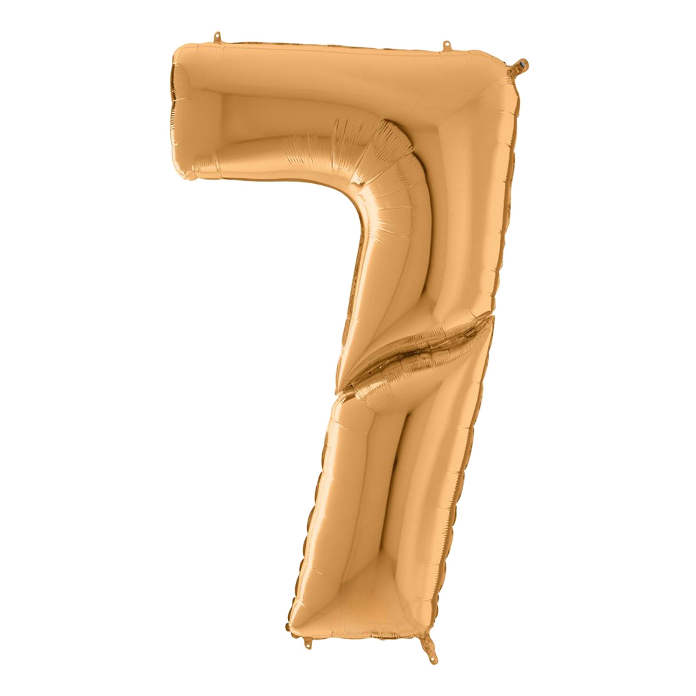 Sifferballong Guld Gigantisk levereras styckvis och finns att välja bland siffrorna 0-9. Varje ballong mäter hela 164 cm stor och är tillverkad i ett foliematerial. Ballongen ger en väldigt lyxig känsla på festen tack vare sin härliga metallicyta. Oavsett vilken eller vilka siffror du väljer så finns det cirka fyra stycken flärpar så att du enkelt skall kunna hänga upp dem på väggen eller exempelvis dra ett snöre genom dem.