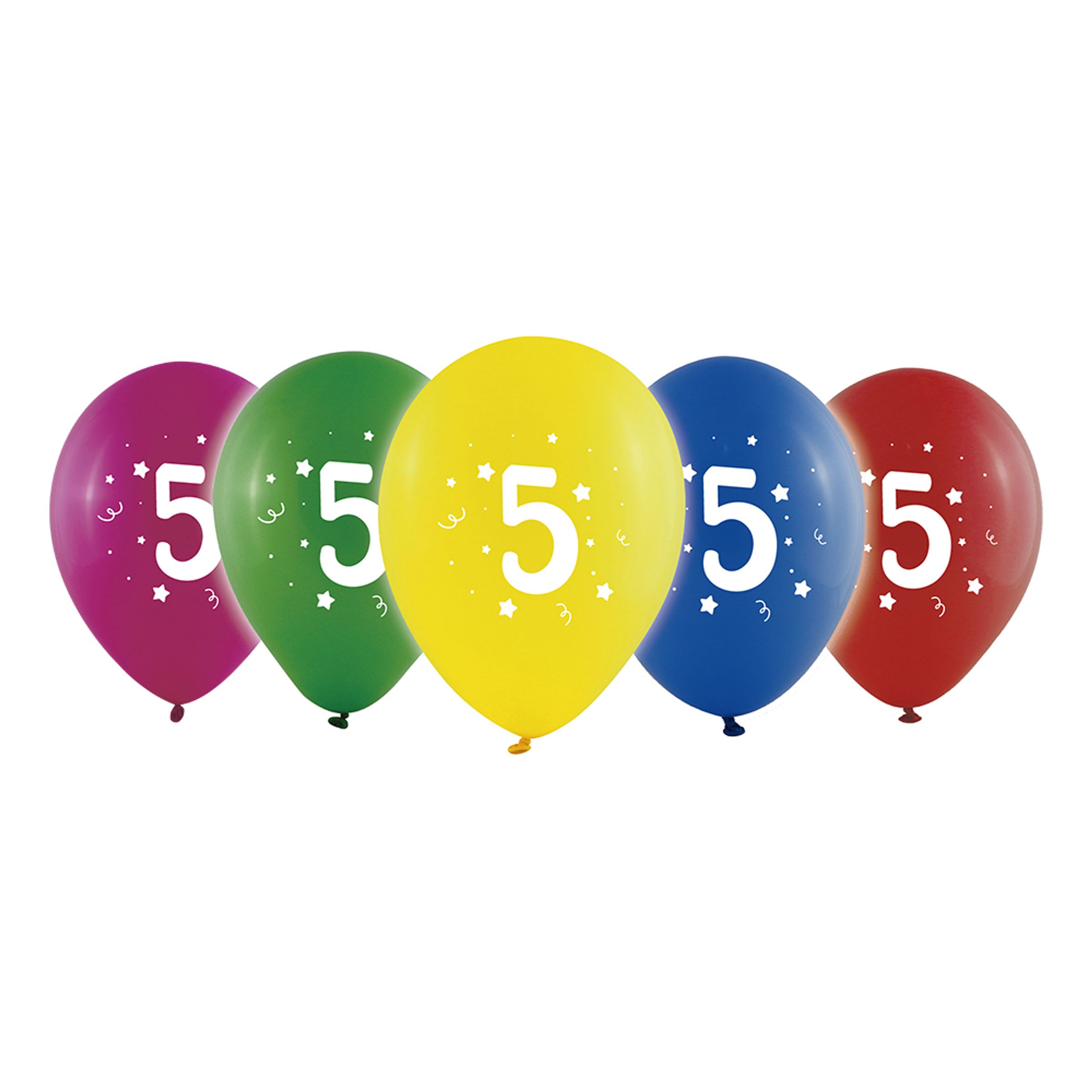 Sifferballong Latex Fem levereras i 10-pack i olika glada färger.