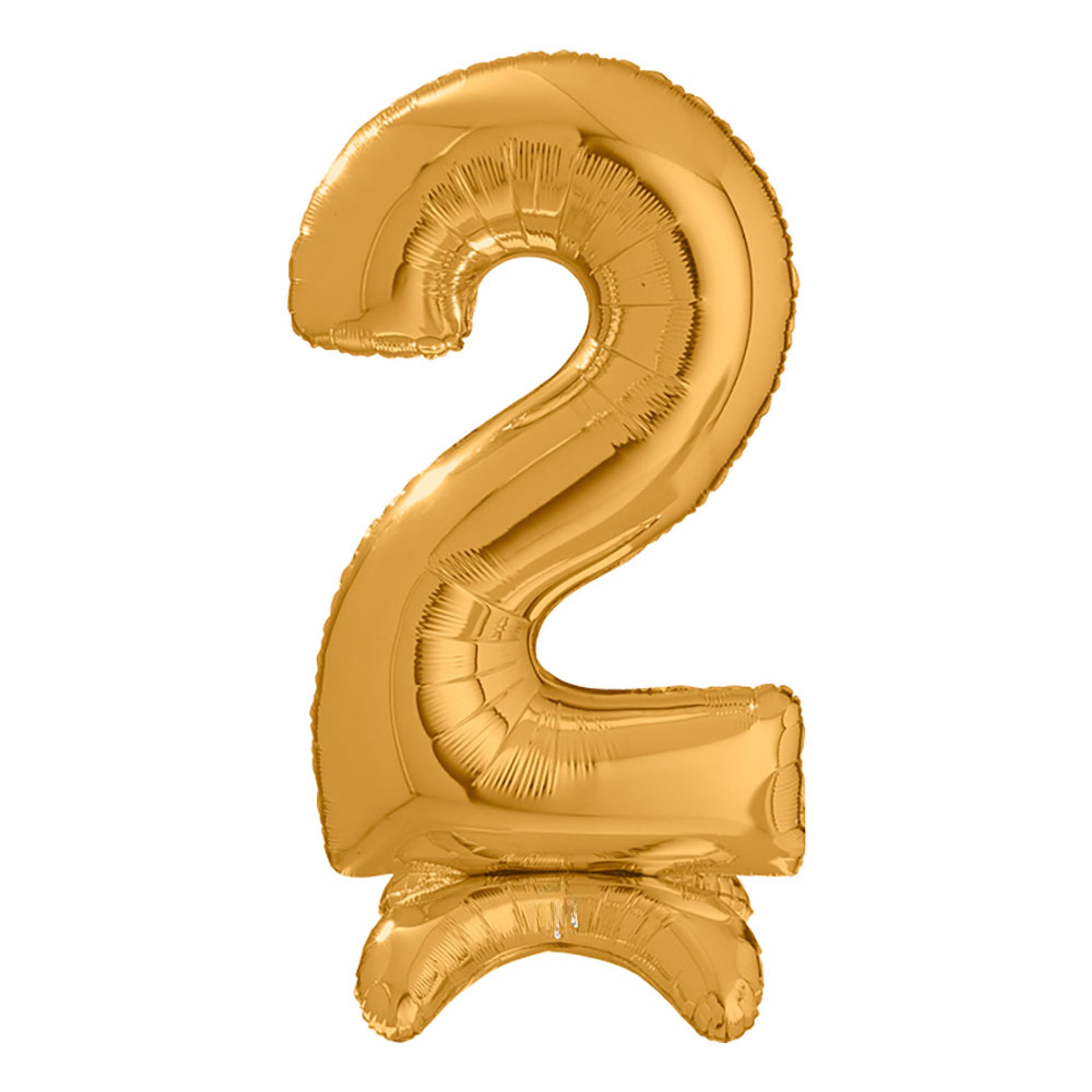 Sifferballong med Ställning Guld är guldiga ballonger formade som siffror. Välj mellan siffrorna noll till nio. Ballongerna är tillverkade i folie och är 63 cm stora när de är uppblåsta. De ska endast fyllas med luft och har en självförslutande ventil.