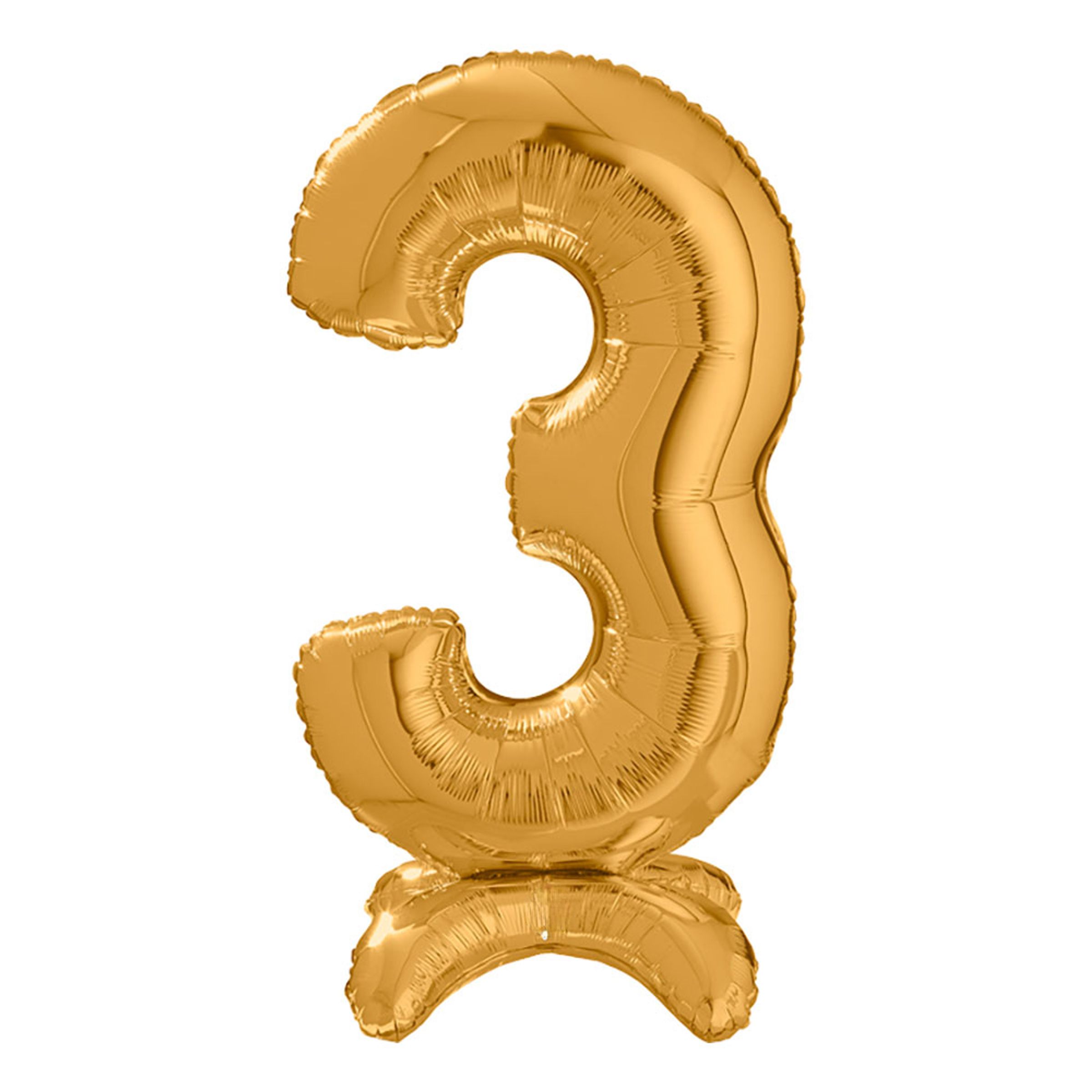 Sifferballong med Ställning Guld är guldiga ballonger formade som siffror. Välj mellan siffrorna noll till nio. Ballongerna är tillverkade i folie och är 63 cm stora när de är uppblåsta. De ska endast fyllas med luft och har en självförslutande ventil.