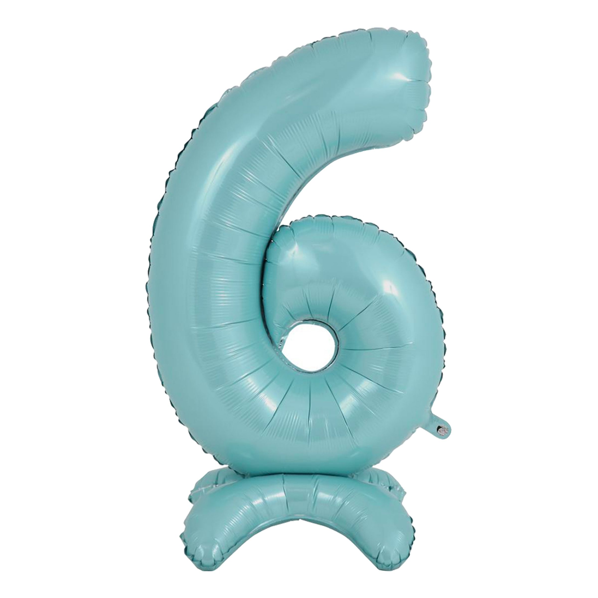 Sifferballong med Ställning Pastellblå – Siffra 6