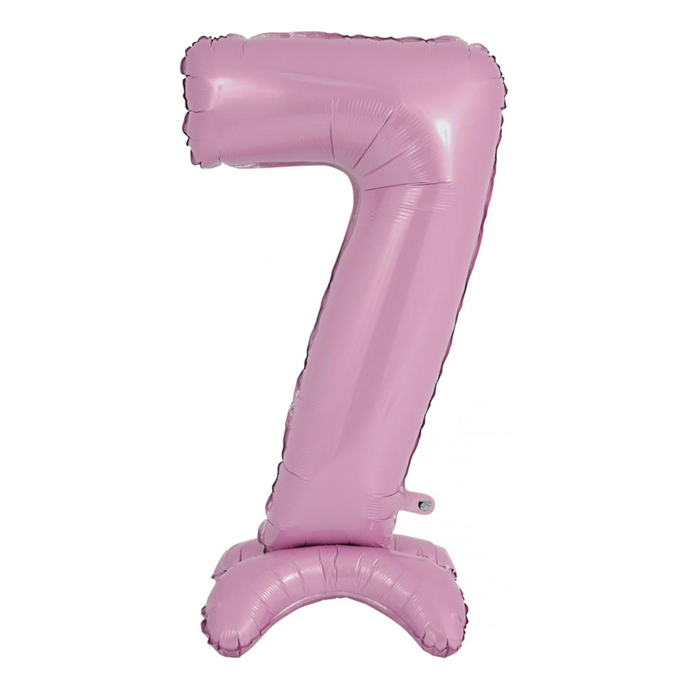 Sifferballong med Ställning Pastellrosa är en rosa ballong i folie formad som en siffra. Välj mellan noll och nio. Ballongen blir 63 cm stor när den är uppblåst och den har en ställningsliknande botten. Fyll ballongen med luft eller helium. Flygtid med helium är upp till sju dagar. Ballongen har en självförslutande ventil.